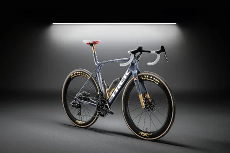 No. 76は、Trekの始まりと、これからの未来をつなぐ架け橋です。創業初期に着想を得たオリジナルのTrekロゴセットとヘリテージブルーの色合いを、最新のMadone SLR 9 AXSプラットフォームに落とし込みました。この記念ICONには、特別仕様のゴールドの周年グラフィック入りAeolus RSL 65Xホイールと、赤いレールを備えた白×赤のサドルが付属します。